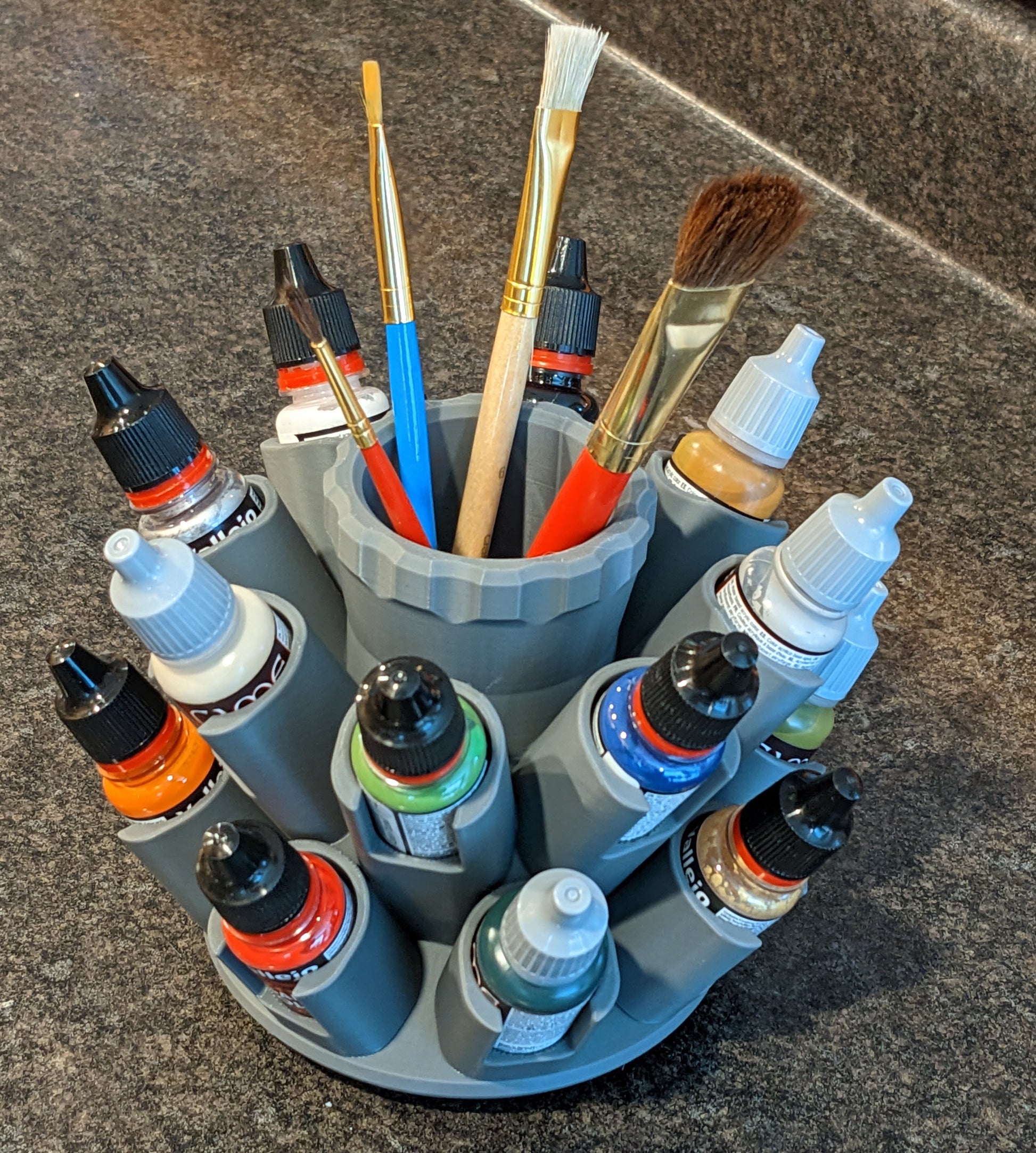 Organizer for Vallejo 25mm Paint - 16 Slot | Spinning Paint Carousel and Brush Holder